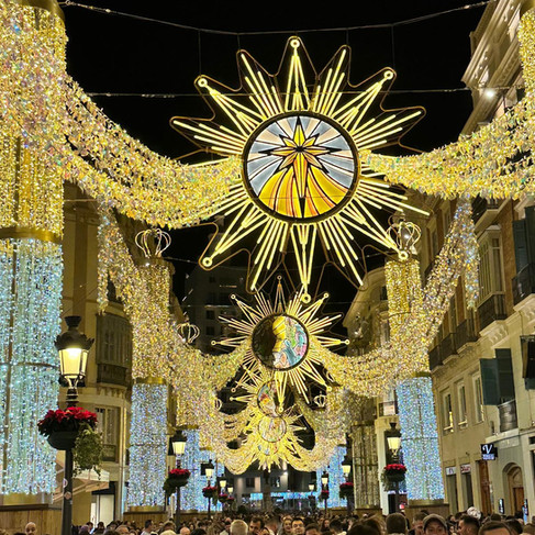 Mรกlagaโs stunning Christmas Lights transforms the city into a festive wonderland. The centerpieceย is Calle Larios, showcasing nightly synchronized music and light displays. The spectacular light and sound show in Calle Larios will take place 3 x daily: 18.30pm, 20.30pm and 22.00pm I'll send an updated email a little closer to the date if the Town Hall adjusts the timings. And I'll also provide a link to lots of other lovely bits to enjoy whilst you're up in Malaga as well.